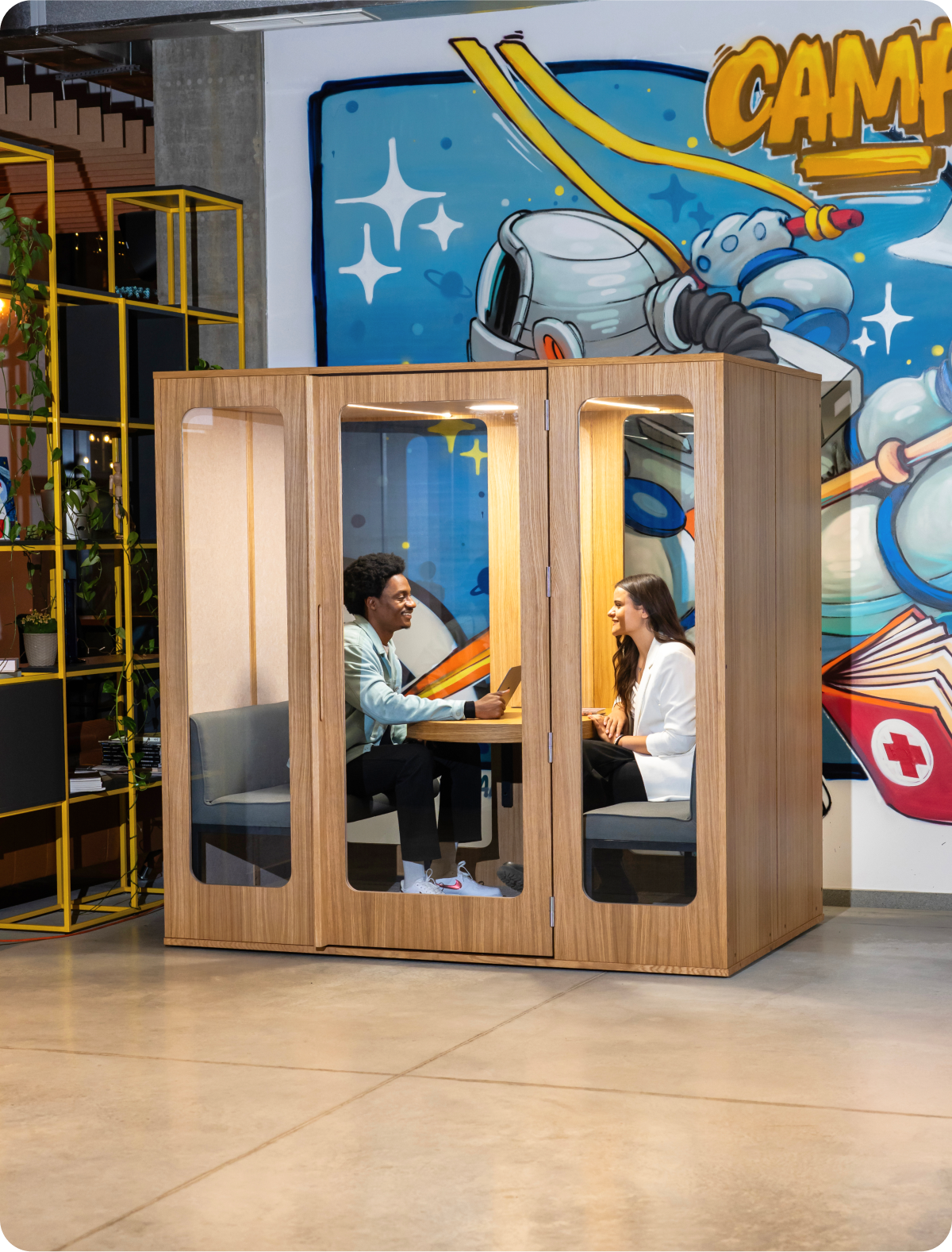 Whether it’s a break from the noise, a private soundproof booth, or a space to collaborate, our office pods have it all.