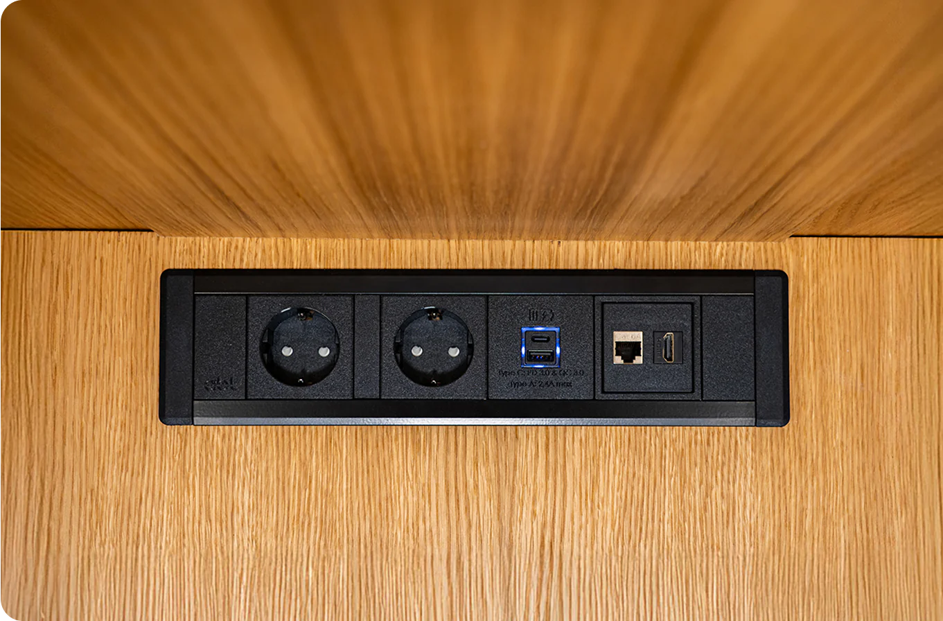 Haven Four keeps you seamlessly connected and fully powered with dual electric sockets, USB-A and USB-C ports, an HDMI port, and a high-speed Ethernet connection.